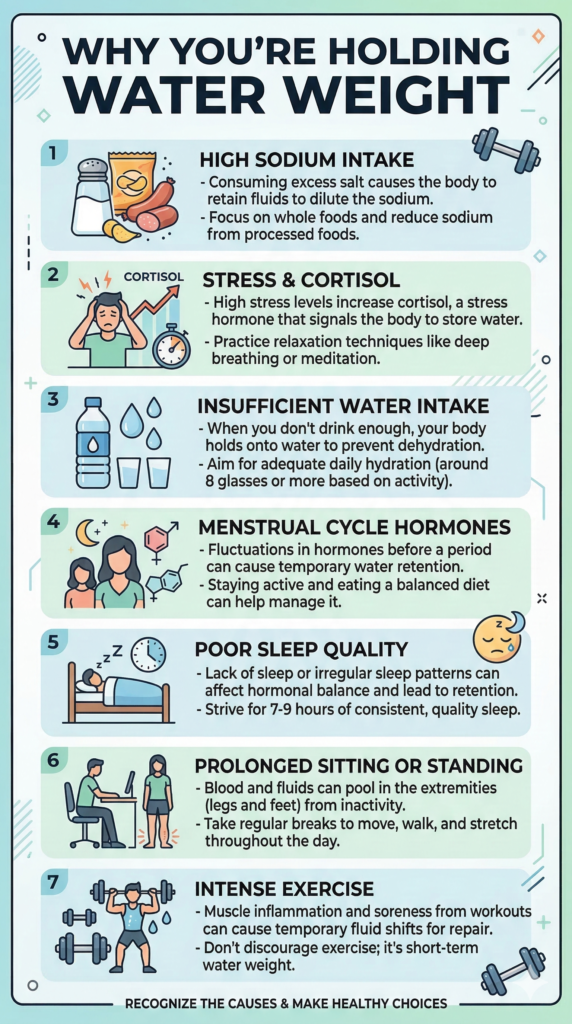 Water retention is a normal biological process designed to maintain balance in the body. Sodium intake, carbohydrate storage, hormones, and kidney function all play roles in determining how much fluid the body holds.